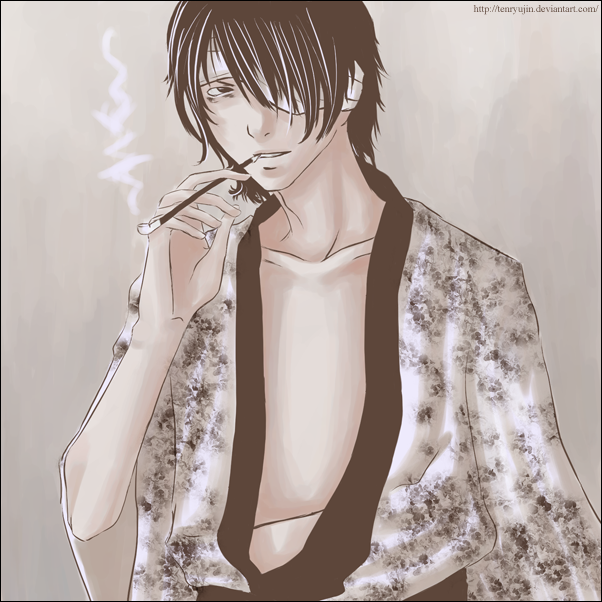 He looks like one of those old fashioned flower arrangers that wear nothing but kimonos and arrange flowers all day. I really like it, actually.