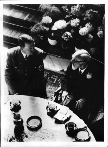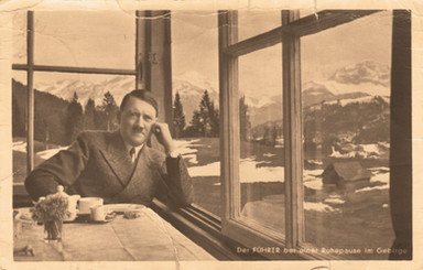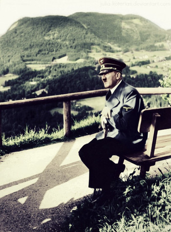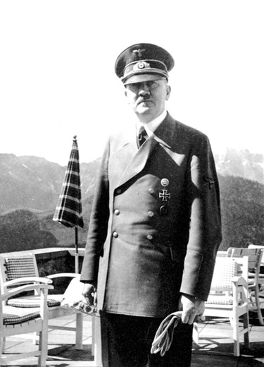 The Berghof of Adolf Hitler at the Obersalzberg near Berchtesgaden: Adolf Hitler at the patio of the Berghof, wearing civil clothes, sitting in a basket-chair and reading files. Photography, around 1936. (Photo by Imagno/Getty Images)Related content