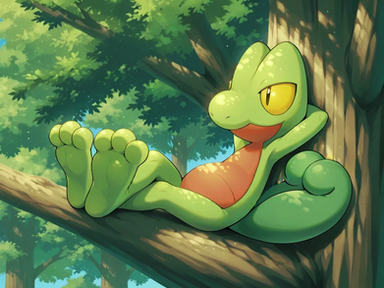 How do you think of Treecko being cute when he's sleeping? Feels cozy laying on pile of leaves. You might imagine If I'm here with my beloved gecko as I lighting up the campfire...