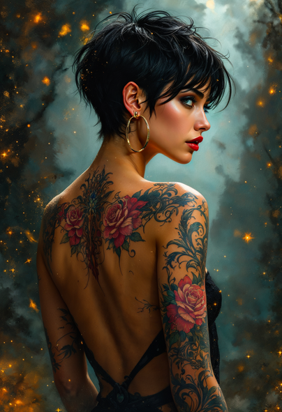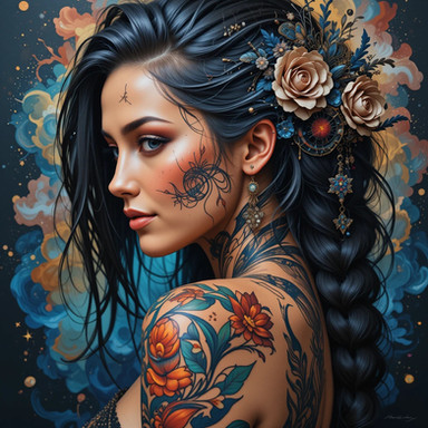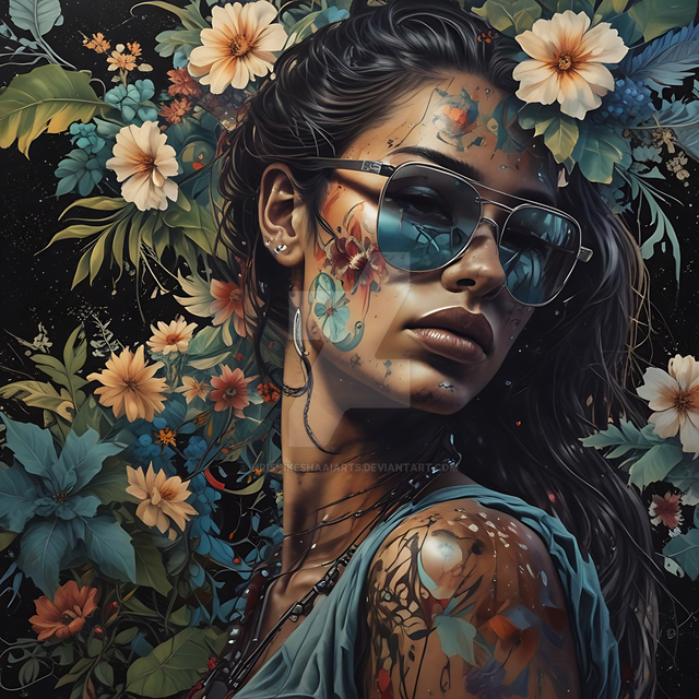#digitalart #portrait #beauty #videogamefanart #background #colorful #dark #digital #elements #exotic #fantasy #fatale #femme #floral #flower #gaze #girl #hair #hibiscus #inked #intense #painting #sultry #tattooed #woman #look #art