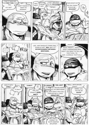 I dont think Leos boring I think he's inspiring!........ Wait am I boring now?? T_T Nooooo! Oh wellz AWSOME comic! And I feel the same way about why you like them! ..... Plus there sexier than Don, Mikey, and anyone else on that show! XD