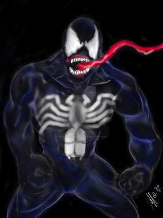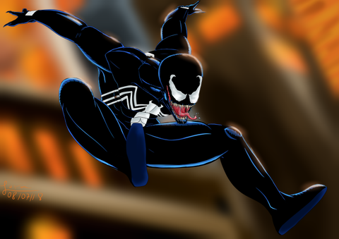 Great work. The anatomy balances the human and the monstrous side, andthe neon light outlines the scary smoothness of the living black matter that encases the host.