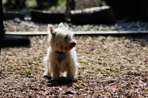 AWWWH! That doggie is sooo cute! The image quality is really nice... Maybe just a little dark, but the greens are pretty, Nice job