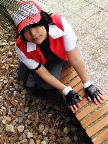 I like this shot a lot. I suggest when you remake your hat to put double-sided interfacing behind the insignia so it will lay flat against the black fabric instead of poofing up like it does right now--you'll handstich around the edges anyway to hold it down permanantly, but it will force the fabric to remain flat and look more like a real baseball cap's insignia. (I've had to make that hat several times...so this is experience talking XDDD) But otherwise, it's a nice costume, and a really good pose! I think this shot looks more 'defeated' than the other--the angle and the colors make it feel much more depressed. Very nice.