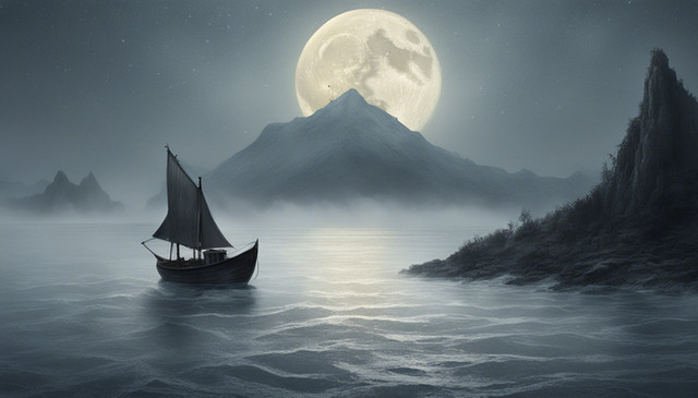#photography #sky #sea #reflection #ai #dreamup #digitalart #wallpaper #boat #melancholy #moon #moonreflection #silent #wallpaperdesktop #water #skyrimelderscrolls #ai_art