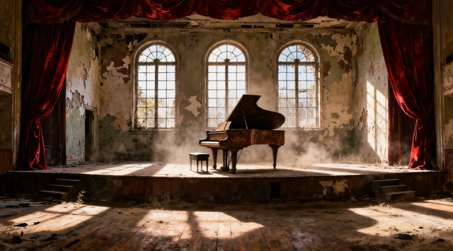 #architecture #ai #dreamup #digitalart #horror #wallpaper #abandoned #abandonedplaces #darkbeauty #darkness #forgotten #piano #redcurtains #theater #forgottenplaces #abandonedbeauty #eerieatmosphere #hauntedtheater #abandonedstage #horrorvibes #ai_art #ghostlyscene #pianoinruins #dustytheater