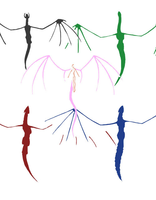 FYI the weaponary sucked. It took about three hours to come up with a design I liked and figure out what way to have the blades pointed to get a 'hey I can slice your throat out' attack. Yes, that was what I was thinking. And then I added feathers.
