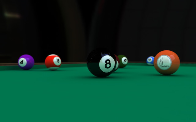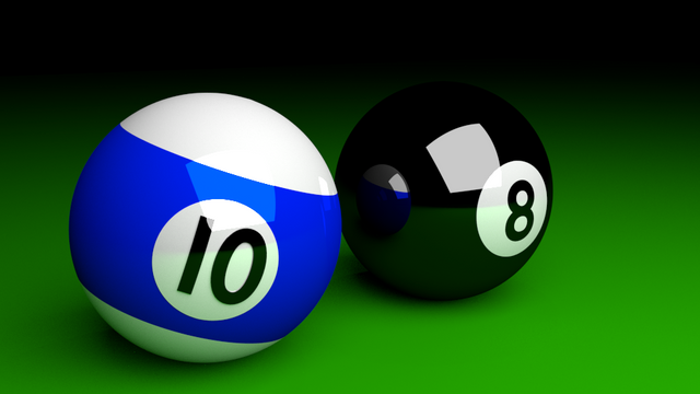 This one took 500 samples to render. I could probably have angled the balls a little more so the eight ball stood out instead of blending in with the black world background.