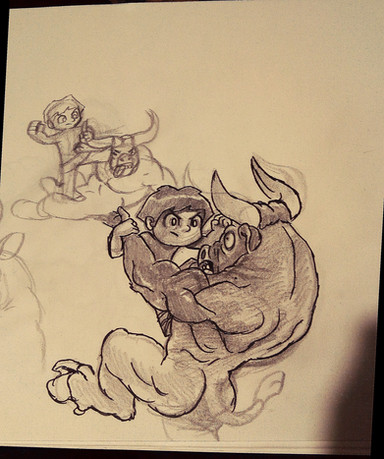 the minotaur decides he will not be killed that easyhe will try and that will be his last action