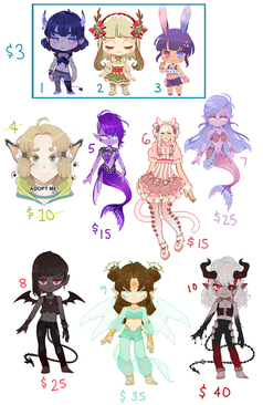 some adopts for you guys!! we're moving a little bit sooner than thought so need some funds for that ; v ;Β$7 each through paypal, no points at the moment! note me or comment to claim
