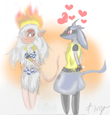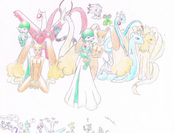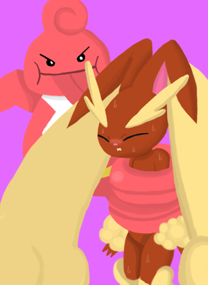 In the middle of getting ready before leaving the house, Maximus discovers he has a talent with hair (as well as a strange love for hats) ...Poor Kayla, her hair is now drenched in Greninja saliva. Antonidas was still sleeping on the pink bed he is sitting on when he felt his tongue being grabbed, he wakes up to find Maximus using his sticky spit to style the hair of their dear trainer.