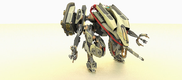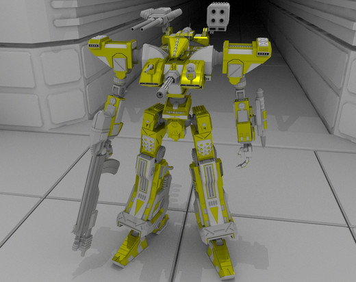 I love how it's a kind of blend between tiny plastic toy and huge metal monstrosity. The entire thing has a very real feel to it, and I'm thinking that these mecha could be used mainly as sniper-like units to pick of enemies and possibly soften up enemy defenses before a larger force went in. THEN the mechs could provide support fire or something.