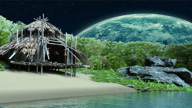 a Render of a landscape for an RP, where the characters crash land on a primitive island.Related content