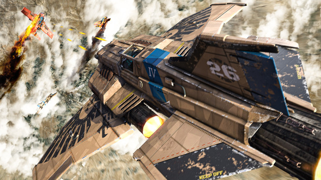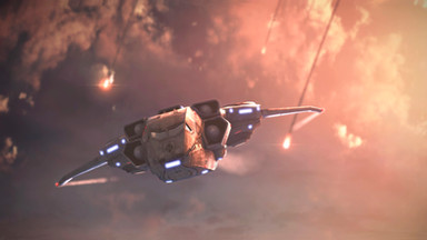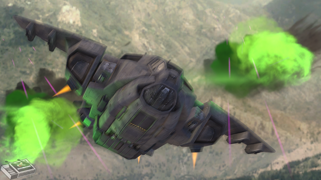Express elevator from Hell!A Jakkar dropship makes its escape from a rather hot LZ.