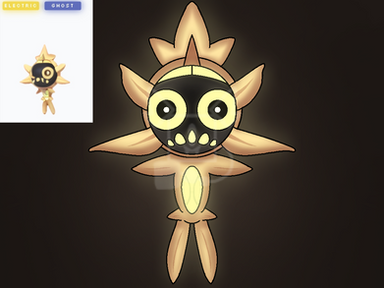 i'm guessing it'd be a Ghost/Fire type? (cause part of it kind of looks like a torch. i dunno)