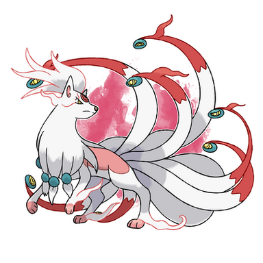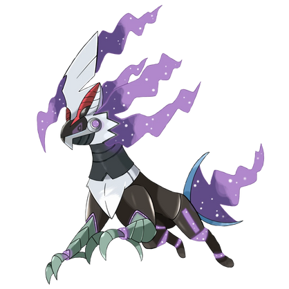It's a Dark/Ghost type, and it's ability is called "Triplicate," which allows it to triple the effects of moves that alter its stats, like Swords Dance for example.