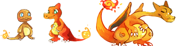 SamayaRegion Charmander line!Charmander, Charmeleon, Charizard