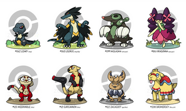 Just to let you know DevilDman, your starters are much more apealing than the official starters. I'm Team Rowlet anyways but your bird starter is AWESOME! It's first form is absolutely adorable and it's middle evolution is so cool as well. But that Final velociraptor/ostrich/terrorbird is epic despite it's strange typing. What are the alternative abilities though? My idea would be speed boost, tough claws, and magic bounce. My Grass starter of yours would have Night Slash, Leaf Blade, Brave Bird/Aerial Ace, Detect.