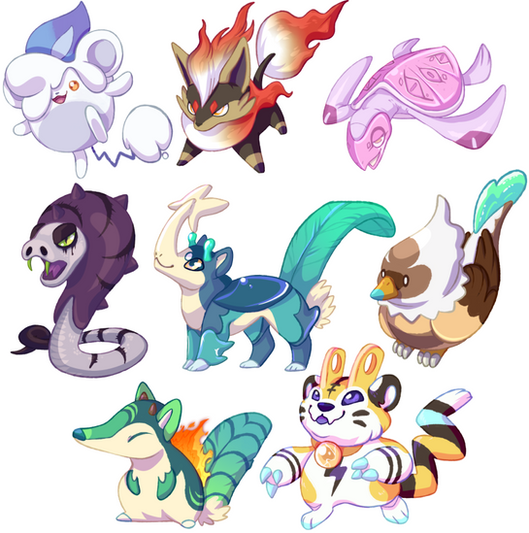 Such great designs but I wish that the types were a bit more balanced. Fairy beats Dark. Fire beats Grass. Grass can't beat Dragon and neither can Dark