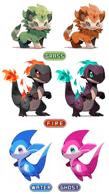 Fire type is a dragon because it is based on the chinese mythos. The sea monster was just to balance things, plus pink bubbles lolΒ