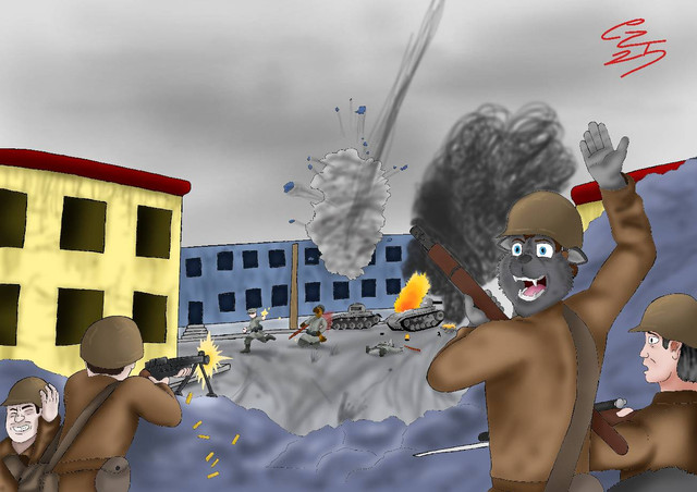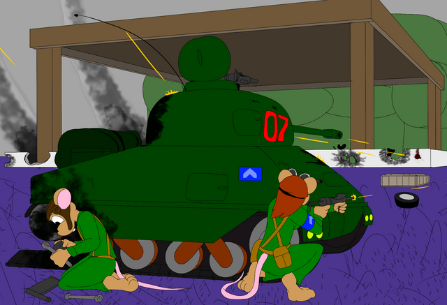 Random Mice of War pic, showing a bazooka team in action. Did some research into this to get the bazooka design accurate and learned a bit of how the team functions. Here is the primary video for those history buffs www.youtube.com/watch?v=1mVeVO…Other fun facts. The inventors of the anti-tank rocket Lt. Col.Edward Uhl and Col. Skinner needed to showcase their new equipment. During a presentation for a type of anti-tank mortar, Skinner and Uhl snuck in and before the show started fired off a round hitting the mock tank. Before the crowd knew what happened, they reloaded and fired a second round. Immediately approached the commanding officer with guns pointed at the two, "Who the hell are you?! What the hell is that?! And we need 50,000 in a month."
