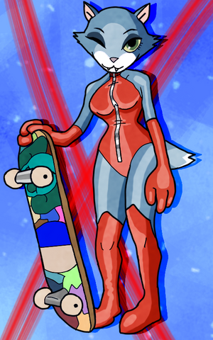 A character from the game Go Go Hypergrind. This is Penny. Her being headless is not too far from the game itself XP. Put the mod world logo for fun.Man I would love to see this game get a makeover or even a sequel.