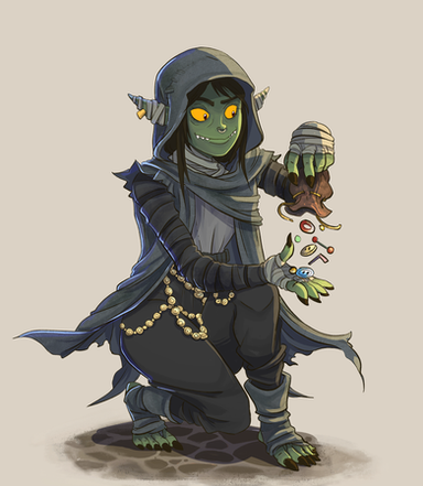 Strix - tiefling sorcerer (from Sigil) character of Holly Conrad from "Dice Camera Action" D&D show.Every time Holly describes Strix - I always see a walking pile of black fabric where items disappear like in the black hole.