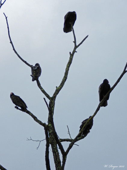 One turkey vulture stepping on another as he tries to land next to his buddy.....they scared the heck out of me