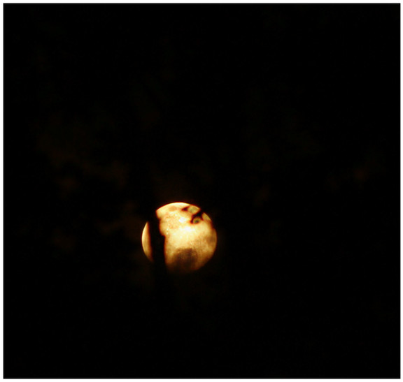 Playing with the crescent moon coming through the clouds/trees at night.......i see a heart!mary