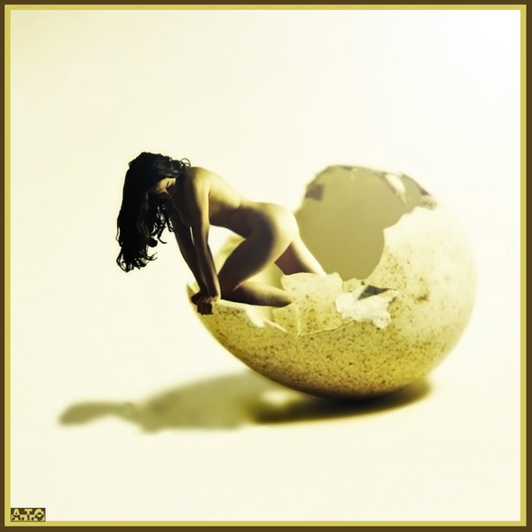 My only technical comment is that I think maybe the broken shells by your feet should be a little more in the foreground, so there's some white space between you and the shells. There's an emotional closeness between you and the whole egg in your hands and a emotional and visual distance between you and the broken ones, and I think that's deemphasized a little by having the one at your feet so visually close to your body. Just IMHO.