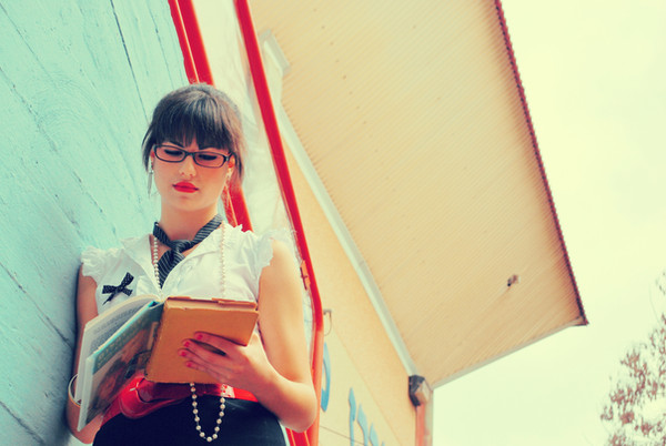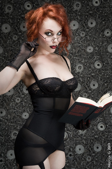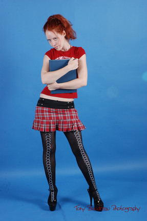 Oh! I've been bad. Put me in detention! Please! This is wonderful. Her expression, the props, he outfit make it so much fun and exciting. The red background it perfect. Vibrant and alive. Great work, Mary.