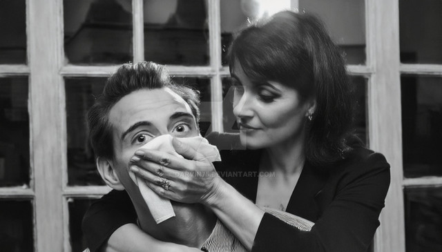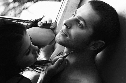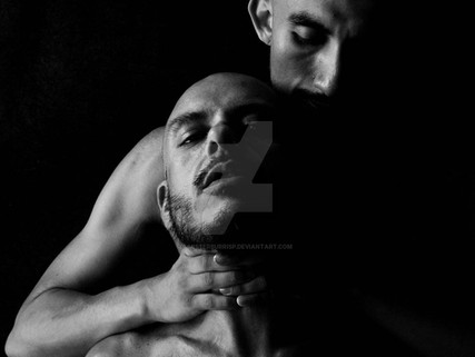 So, now we're in full view and all the beautiful little details start to pop out, the grit of the picture, so to speak. We've got skin details that are rough, but a hand that is soft. Maybe it's just me, but i'd imagine there to be a whole lot more emotion in the face of the victim, and more of a tight grip on his face by the assailant. Unless this is a willing thing? I have not the time to read the story at the moment, so i guess i'll never know, but i do know i'm twisted and evil and can totally relate!