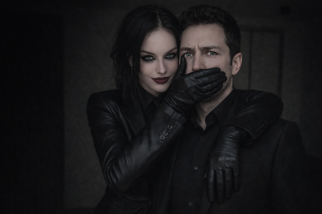 The expression and poses of both your models are quite convincing... I have to say that I love the concept.