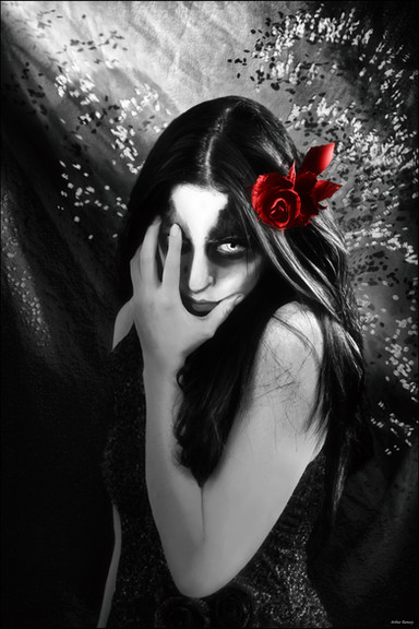 I really like this series. The black and white seems to give the faces new shape, and it's just so different, and unique. It's awsome! And I love that rose! Really cool.