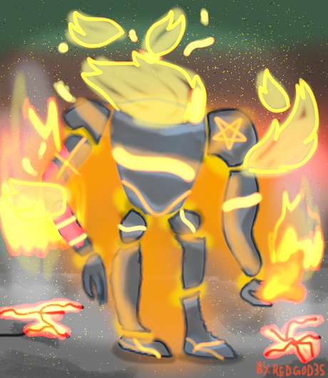 Golem character i made for a friend's DnD.Its a fire spirit / IFRIT that an alchemist sealed into the body of a golem for reasons unknown.