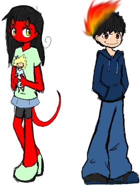 :3 This came out when I was practice-ing drawing violet (who I still need work on) and the little buddy devil was for funnehs xDCharacters are not mine, but this picture is so no stealing~
