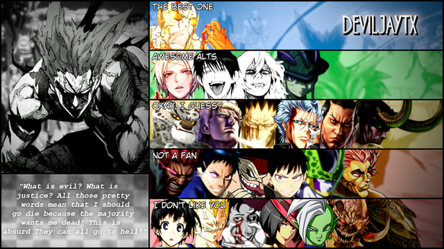 I DON'T LIKE YOU: Dark Matter (Kirby), All For One (My Hero Academia), Thragg (Invincible), Toichiro (Mob Psycho 100), Doctor Doom (Marvel), Vilgax (Ben 10)