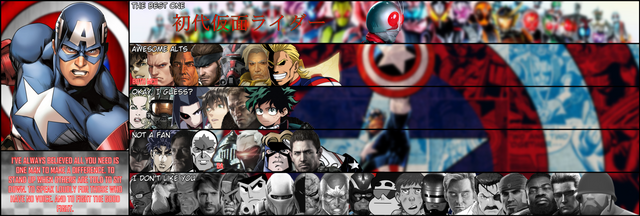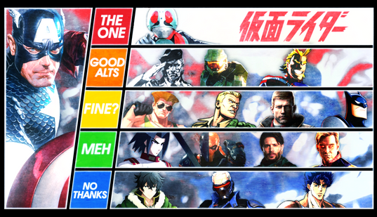 THE BEST ONE: Kamen Rider Ichigo (Kamen Rider), Wonder Woman (DCEU) (For MCU Captain America)AWESOME ALTS: Akatsuki (Akatsuki Blitzkampf), Big Boss (Metal Gear), Hunter (Star Wars), Lady Blackhawk (DC)