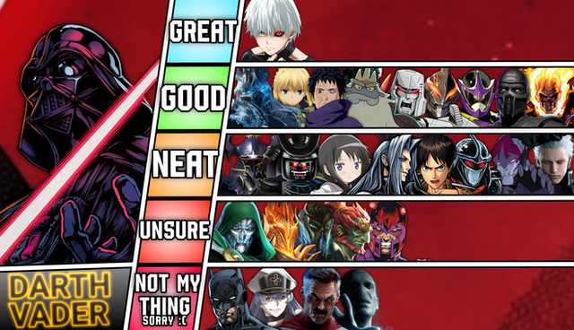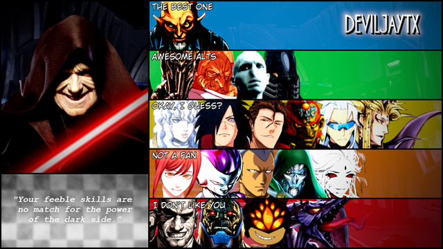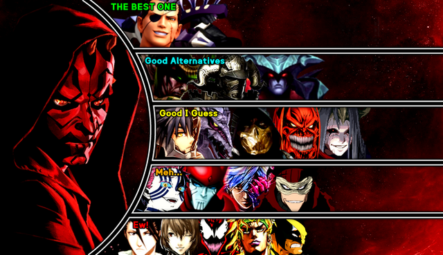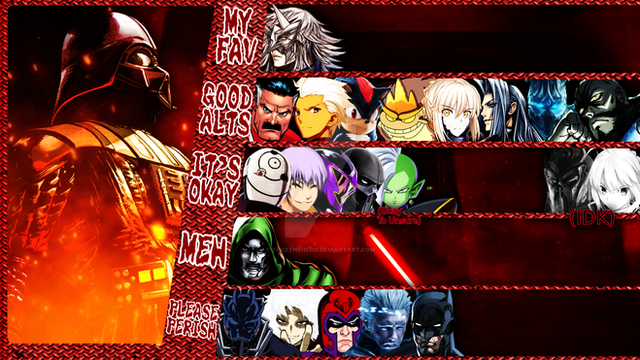 Meh...: Omni-Man (Invincible), Golbez (Final Fantasy), Saber (Fate), Miraak (Elder Scrolls), Lord Drakkon (Power Rangers), Magneto (Marvel), Kazuya (Tekken)
