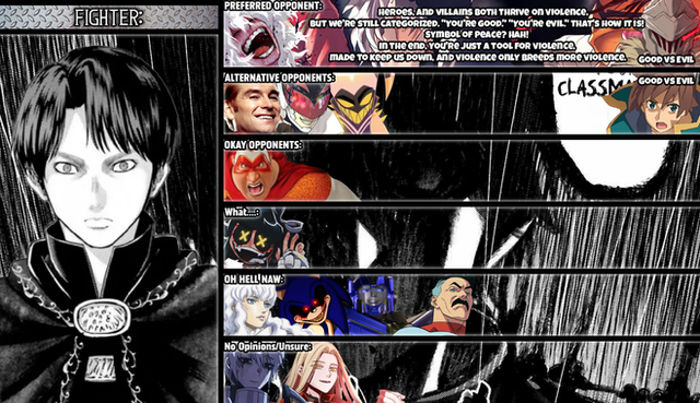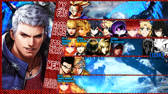 I DON'T LIKE YOU: Dio (Jojo's Bizarre Adventure), Homura Akemi (Madoka Magica), Remilia (Touhou), Pinhead (Hellrazer), King Knight (Shovel Knight), Homelander (The Boys), Monika (Doki Doki Literature Club), Sayaka (Madoka Magica)