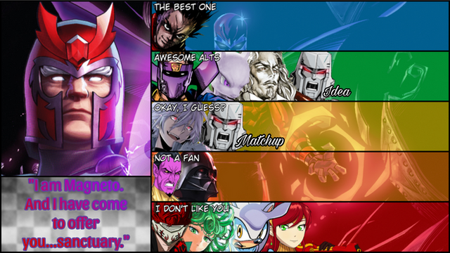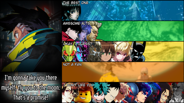 Meh...: Ezra Scarlet (Fairy Tail), Superman (DCEU) (For MCU Iron Man), Copen (Gunvolt), Rick Sanchez (Rick and Morty), Cyborg (DC Comics)
