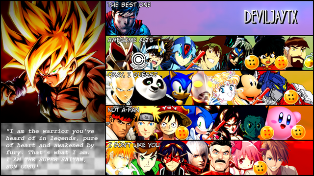 I DON'T LIKE YOU: Zero (Megaman), Builders Malroth (Dragon Quest), Tyr (God of War), Omniman (Invincible), Vergil (Devil May Cry), Green Goblin (Marvel), Yoda (Star Wars)