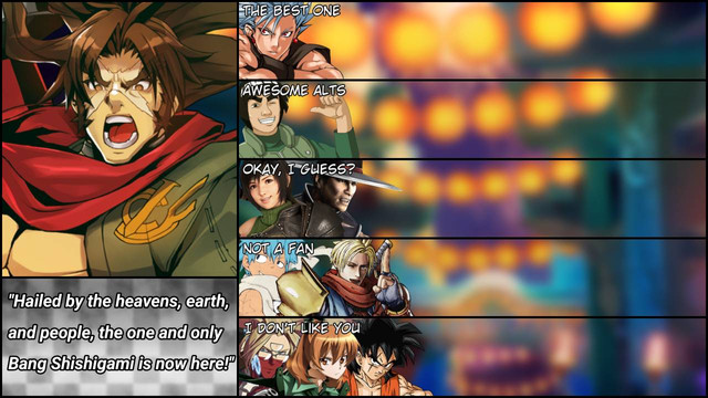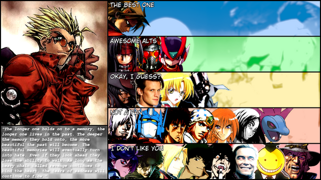THE BEST ONE: Vash The Stampede (Trigun)AWESOME ALTS: Ragna The Bloodedge (Blazblue), Nameless (King Of Fighters), Asura (Asura's Wrath), Hulk (Marvel)