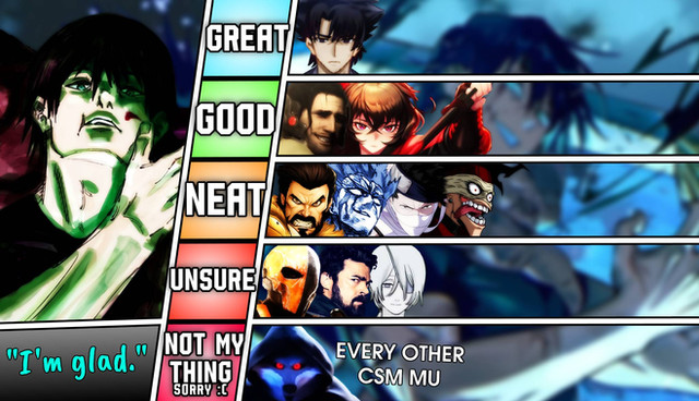 THE BEST ONE: Arcueid Brunestud (Melty Blood)AWESOME ALTS: Yu Narukami (Persona), Jaden Yuki (Yu-Gi-Oh!), Alone (Saint Seiya), Kamen Rider Zi-O (Kamen Rider)