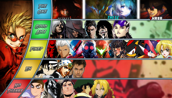 NOT A FAN: Dante (Devil May Cry), Optimus Prime (Transformers), Kenshiro (Fist of the Northstar), Johnny Joestar (Jojo's Bizarre Adventure), Kenshin Himura (Rurouni Kenshin), Alita (Alita Battle Angel), Hydreigon (Pokemon)