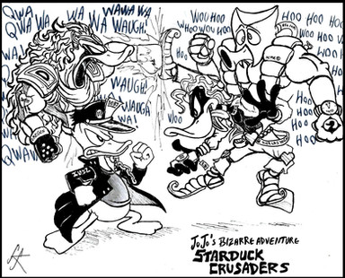 Can't wait to see what characters you use for Phantom Blood! Although ifI were to guess the duck for young Dio Brando...Glomgold would be a bit too old. Gladstone perhaps? His blonde hair and his pompous arrogant persona are quite reminiscent of Dio in his youth (before vampire days). The other obvious choice would be Rockerduck, if only for the older Dio.