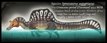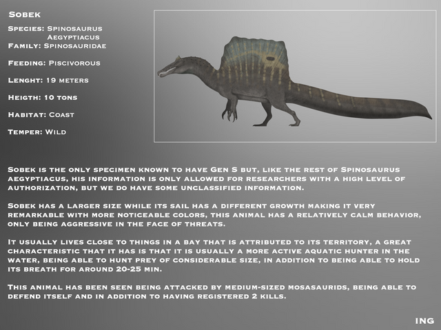 Here is now the complete article, boyo ! You really thought I forgot about our egyptian fishing friend ? This is how I picture a more Crichtonian Spinosaurus; just mix some of Dr Ibrahim's theories with McCreery and Stan Winston's design and the color they gave the oldest figurine and representation of this dude in this franchise.The idea is that he's calm on land but an absolute mad lad in deep rivers.