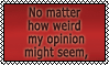 I often think that it's naive that many grown-up believe in God, but I don't go to them and say they're wrong. They have reasons for their believes and I have mine. My reasons accumulate with time, so the fact that it's hard to make me change my mind has nothing to do with my immaturity. Maybe you haven't noticed, but I've never said that I'm right and the opposite side is wrong. So as long as I'm not trying to force my view down anyone's throat, it should be okay. YES, I'm stubborn and I admit it, but it doesn't make me narrow-minded.