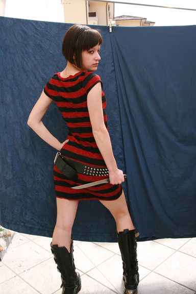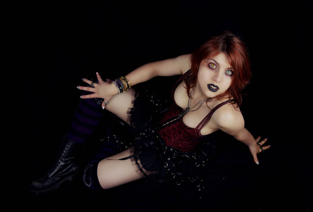 This is a very great shot. I love the girl's outfit and the shadow is really evil.
