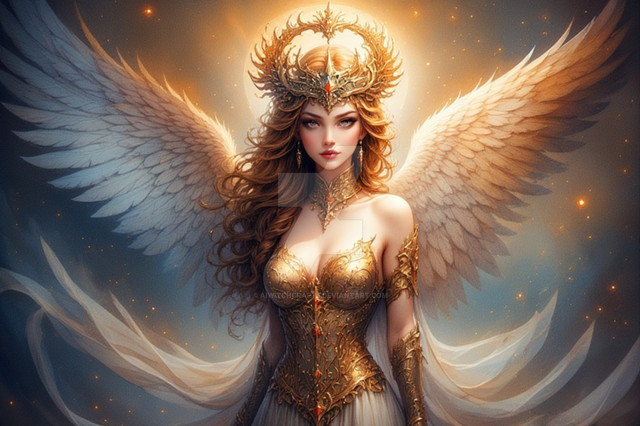 #beauty #magic #fantasyart #angel #heaven #digitalart #guardian #characterdesign #portrait #fantasycharacter #wallpaper #fairy #ai #dailydeviation #deviantart #digitalartwork #editing #golden #magical #wings #aiart #synthography